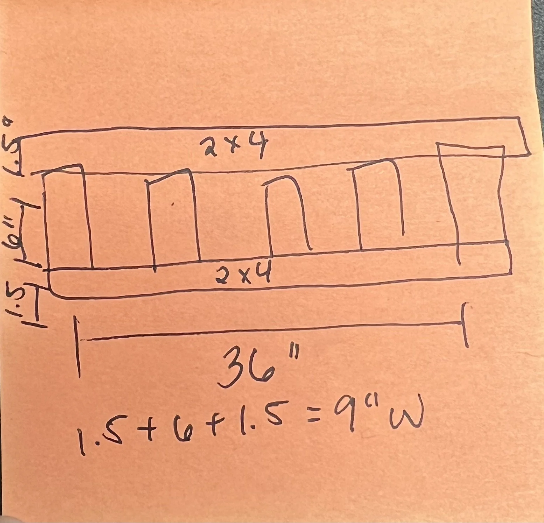 For the side cleats - I cut 2x4s into pieces 6" in length. I will use these pieces to create the "steps" of the ladder on the cleats. I don't know why, but in the moment I had it in my head that my 2x4s were only 1" thick. So when I made the ladders/cleats, they were 9" in length total. Because 1.5 (actual width of 2x4) + 6 + 1.5 = 9. This mistake worked out because I was still able to open up the top loading washer. But to be honest… I didn’t realize this mistake until after my second round of buying wood. More on that later.